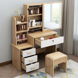 Modern Wood MDF Panel Dressing Table Bedroom Small Apartment Push-Pull Mirror Integrated LED Light Makeup Table Storage